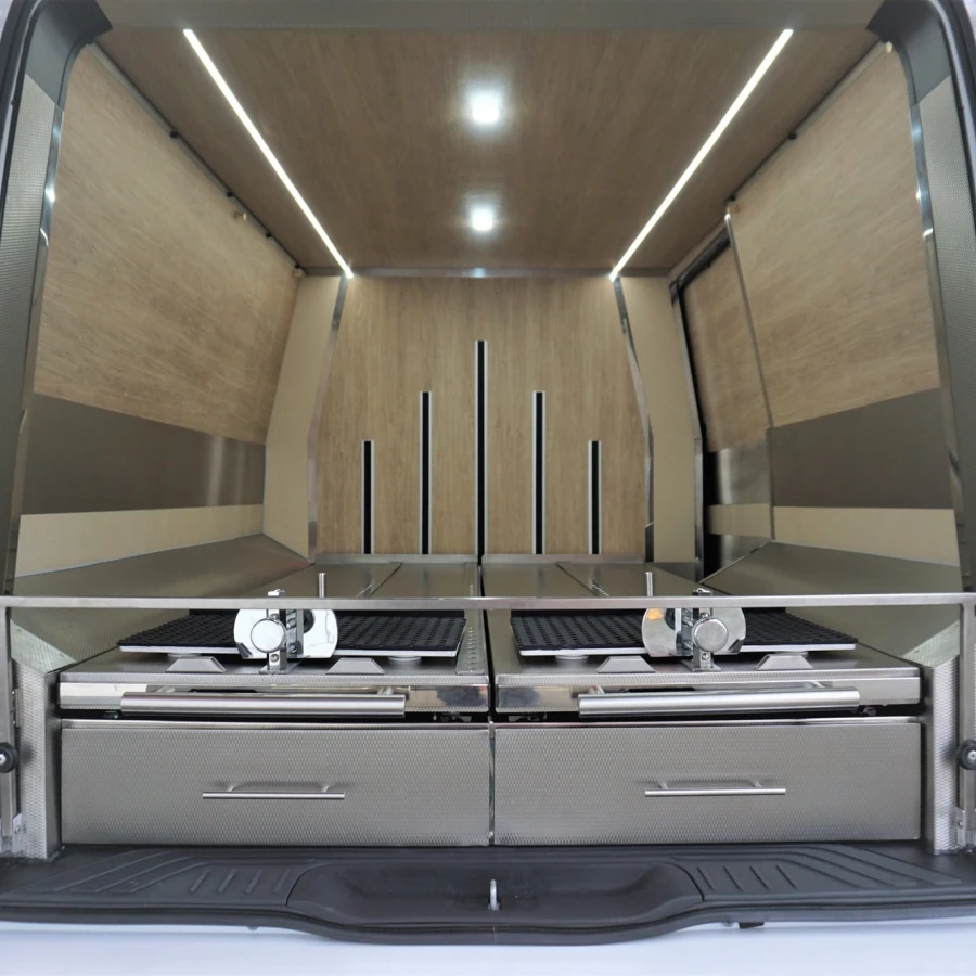 Bestattungstransporter anfragenFlexibel und durchdacht im Einsatz B5QE Sargladeboden als zentrales Element für 1- und 2-Sarg-Betrieb