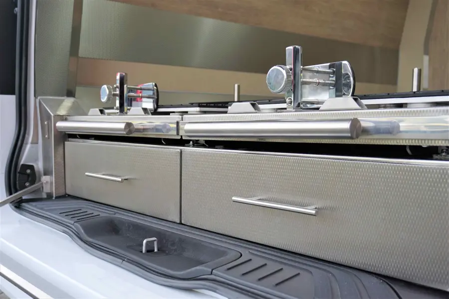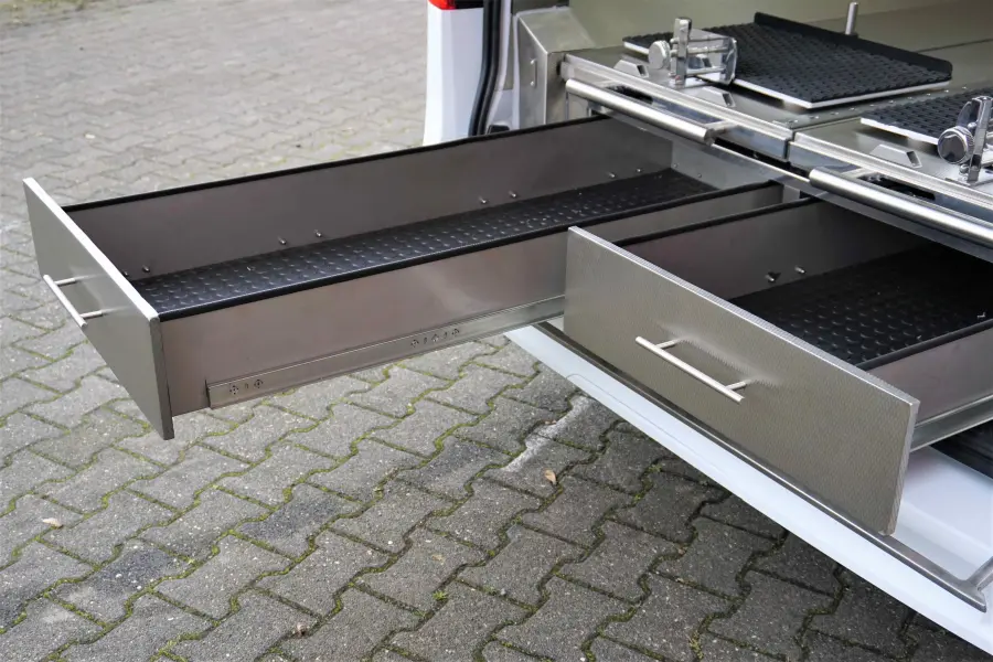 Zwei geräumige Schubladen, welche über die Heckklappe erreichbar sind.