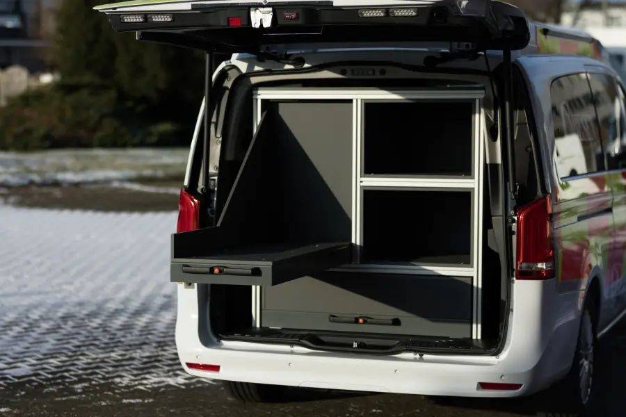 Unser NEF-Ausbau auf Basis der Mercedes-Benz V 250 D "V-KLASSE" EXTRA-LANG (190 PS | 9G-TRONIC | AIRMATIC | Reinweiß) wurde als modernes Einsatzfahrzeug konsequent auf Funktion, Sicherheit und Qualität ausgelegt.